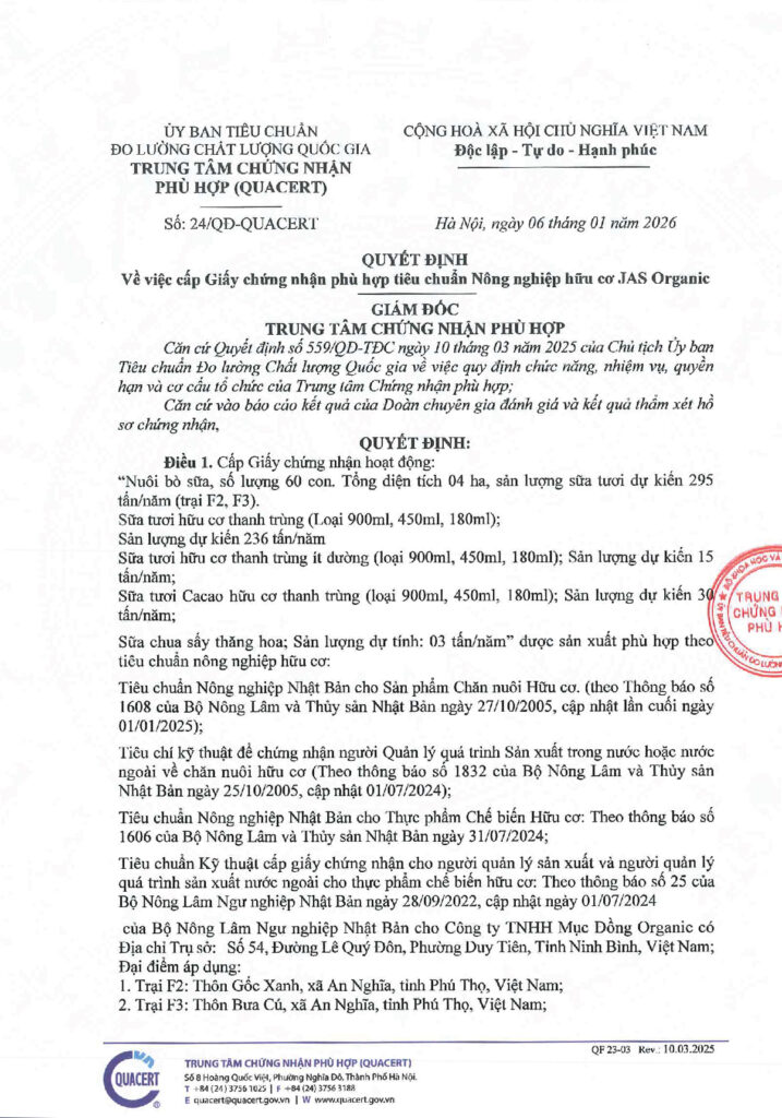 Với Mục Đồng, mỗi lần đánh giá không chỉ là việc đạt hay chưa đạt một con số, mà là cơ hội để củng cố hệ thống, chuẩn hóa quy trình và minh bạch thông tin tới cộng đồng. Việc chủ động cập nhật phạm vi chứng nhận hữu cơ JAS Organic lần này cũng nằm trong tinh thần đó – để mọi đối tác và khách hàng hiểu rõ bức tranh hiện tại, đồng hành cùng thương hiệu trên hành trình dài hơi của nông nghiệp hữu cơ.